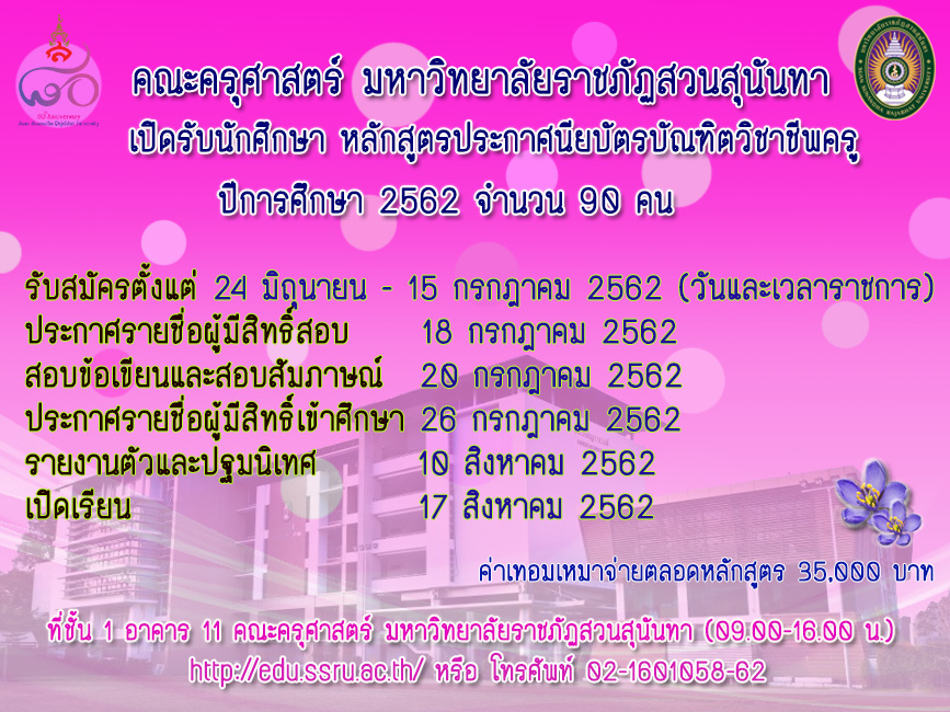 Note: No application will be made on 2 July 2019 as the Faculty of Education joins the Moral Transparency Project. Academic Year 2562
