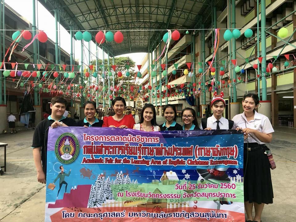 December 25, 2560. Prof. Dr.Sasiporn Phongploenpis, with the Pro. Teeraporn Plailex, provides academic services under the project. "Academic Fair for the Learning Area of English Extravaganza" at Wat Songtham School Samut Prakarn Province