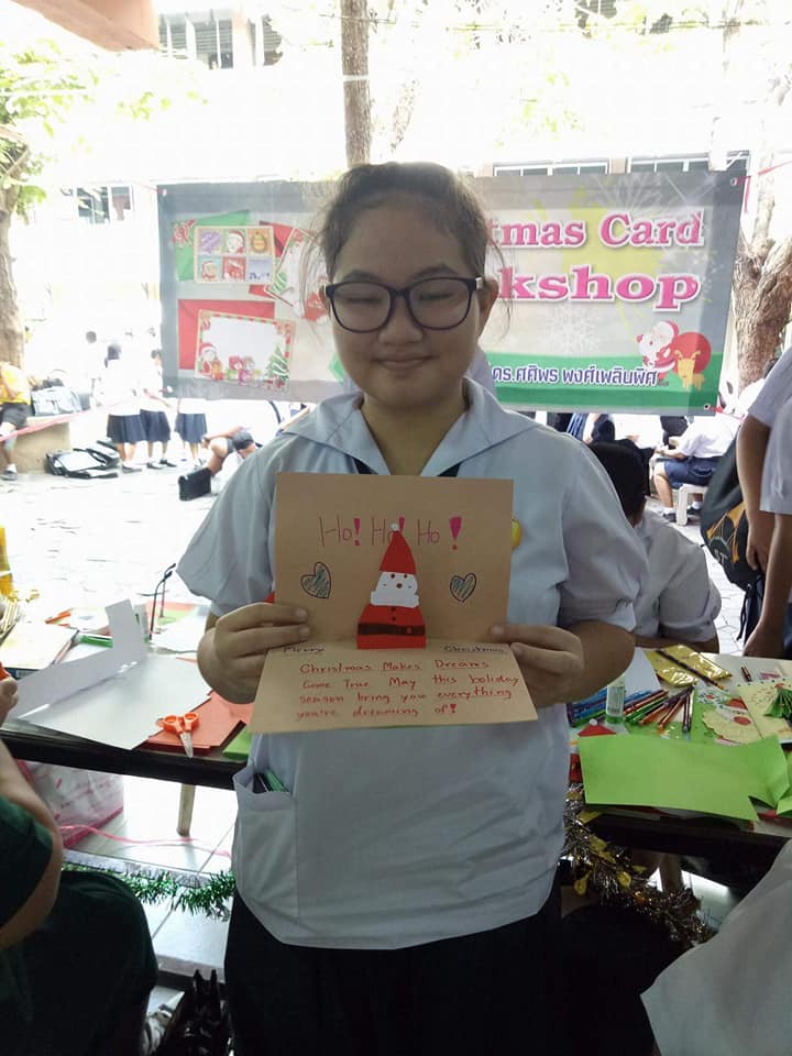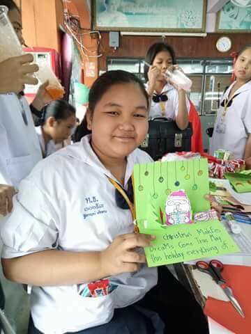 The program consists of four activities: 1. Christmas advent calendar 2. Christmas card workshop 3. Christmas word search and 4. Christmas quiz with first year students in English. Miss Nattaphit Srichum, Mr. Yosep Dulyapon, Miss Sottabongot tirapalika and Ms. Supatta somnug. joined the mentors for the students.
