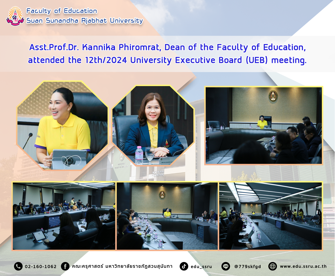 On December 4, 2024, Assistant Professor Dr. Kannika Phiromrat, Dean of the Faculty of Education, Suan Sunandha Rajabhat University, attended the meeting of the Suan Sunandha Rajabhat University Executive Committee (E.U.M.) No. 12/2024, chaired by Associate Professor Dr. Chutikarn Sriviboon, President of Suan Sunandha Rajabhat University, at the University Council Meeting Room, Building 31, 5th Floor.
