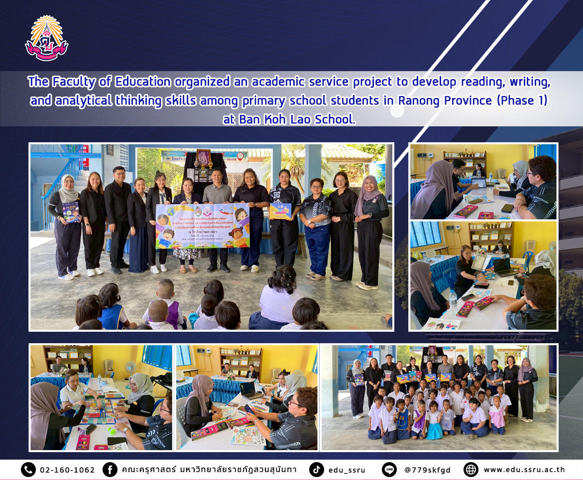 The Faculty of Education, Suan Sunandha Rajabhat University, organized activities under the Academic Service Project for Developing Reading, Writing, and Analytical Thinking Skills of Primary School Students (Phase 1), as part of the main project entitled “Project for Enhancing Educational Quality and Developing Educational Innovators Based on the Competency-Based PTRU Model.”