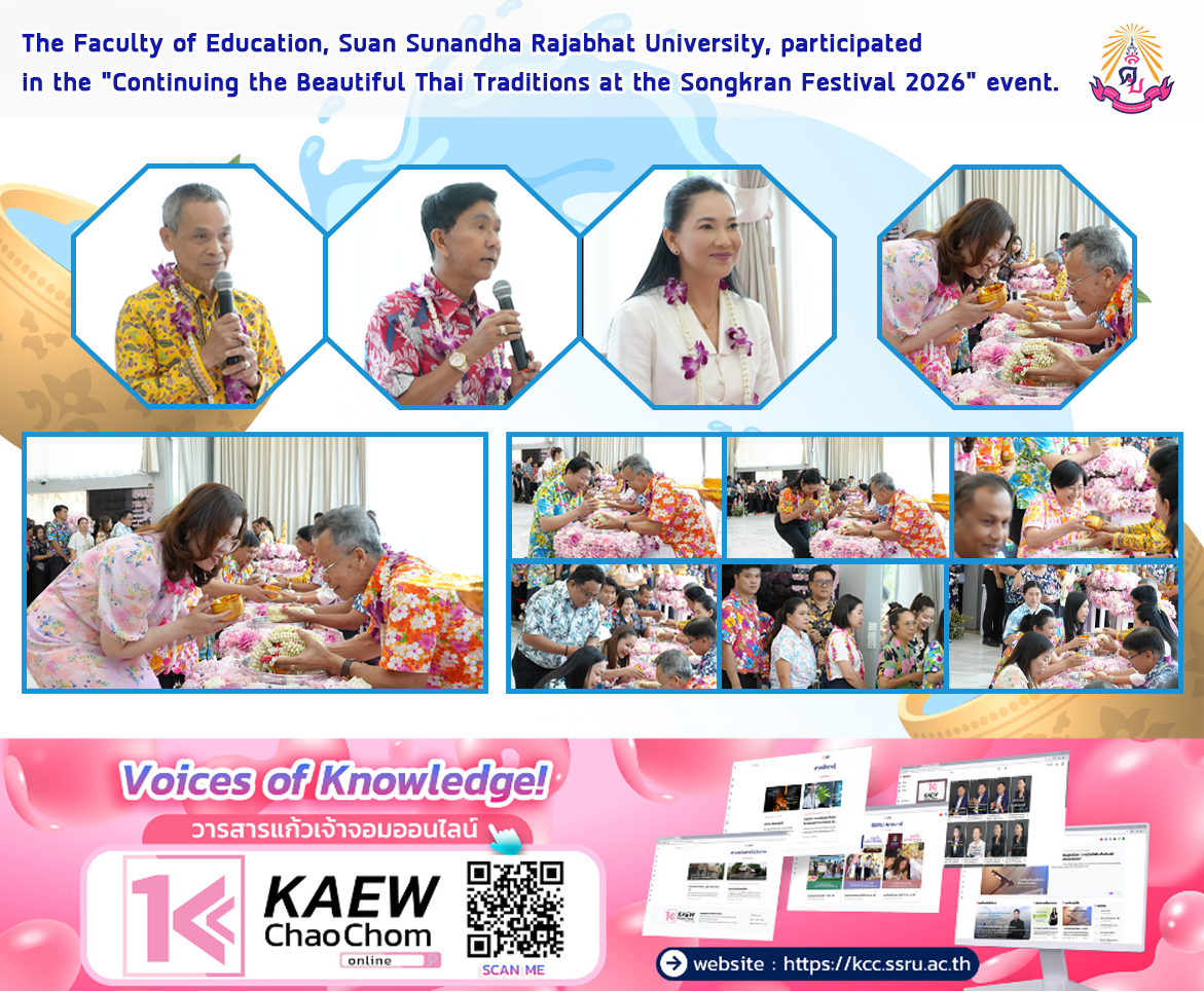 On April 7, 2026, the Faculty of Education, Suan Sunandha Rajabhat University, led by Assistant Professor Dr. Kannika Piromrat, Dean of the Faculty of Education, along with administrators, lecturers, and staff, participated in the "Continuing the Beautiful Thai Traditions in the Songkran Festival 2026" at the Hall of Honor, 1st floor, Building 32. This event aimed to preserve the fine Thai traditions of the Thai New Year festival and create a warm and auspicious atmosphere for the university's administrators, lecturers, and staff.