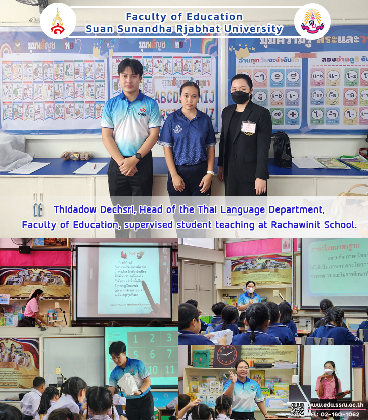 On November 29 and December 6, 2023, Thidadow Dechsri, Head of the Thai Language Department, Faculty of Education, Suan Sunandha Rajabhat University, supervised student teaching at Rachawinit School.