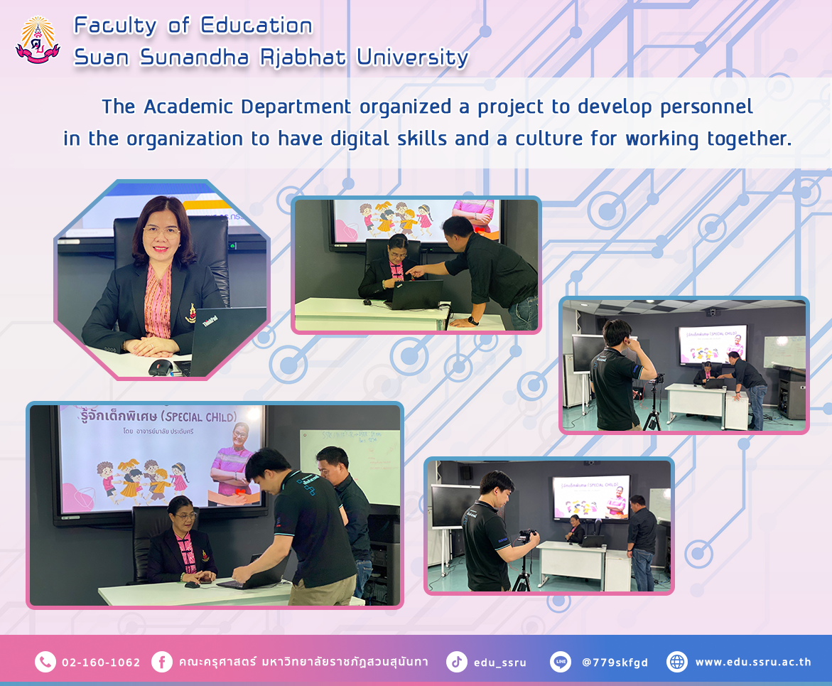 On February 9, 2024, the Academic Department, Faculty of Education, Suan Sunandha Rajabhat University, organized a project to develop personnel in the organization to have digital skills and a culture for working together in classroom 1136.