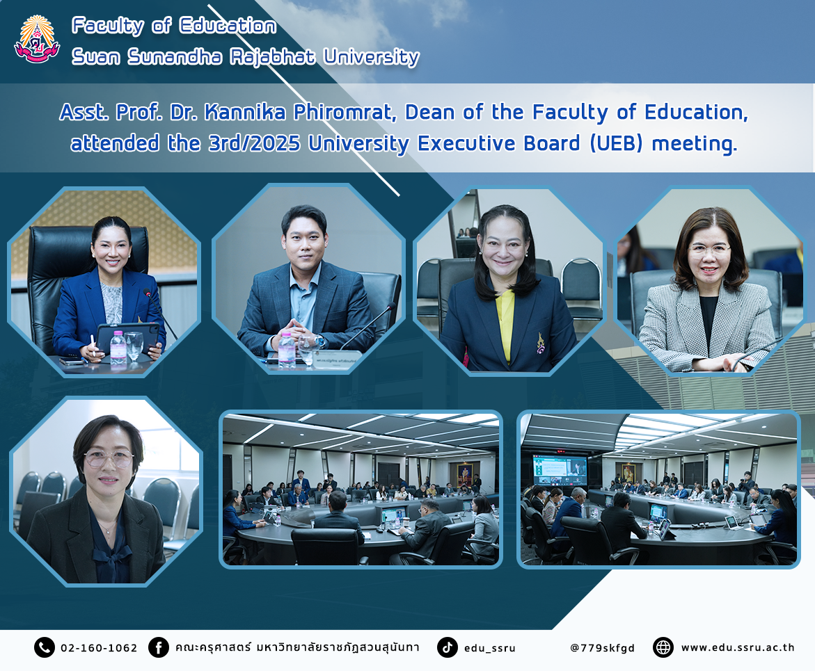 On March 10, 2025, at 8:30 a.m. - 12:00 p.m., Assistant Professor Dr. Kannika Phiromrat, Dean of the Faculty of Education, and Ms.Wimon Rakree, Acting Head of the Office of the Faculty of Education, Suan Sunandha Rajabhat University, attended the meeting of the Executive Committee of Suan Sunandha Rajabhat University (E.C.M.) No. 3/2025, chaired by Associate Professor Dr. Chutikarn Sriviboon, President of Suan Sunandha Rajabhat University, at the University Council Meeting Room, Building 31, 5th Floor.