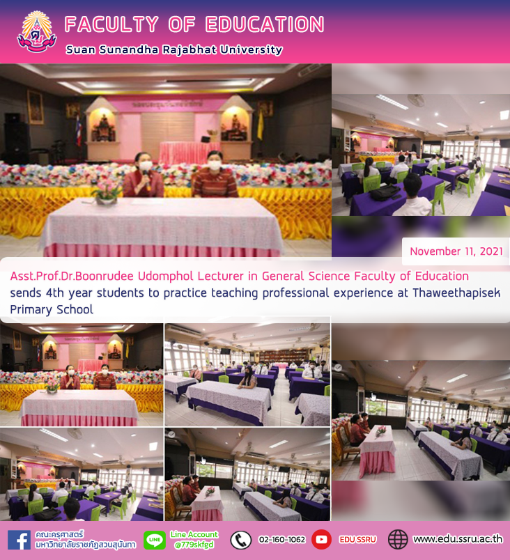 On November 11, 2021, Assistant Professor Dr.Boonrudee Udomphol, a lecturer in the Department of General Science, Faculty of Education, sent students to send 4th-year students to practice teaching professional experience at Thaweethapisek Primary School.