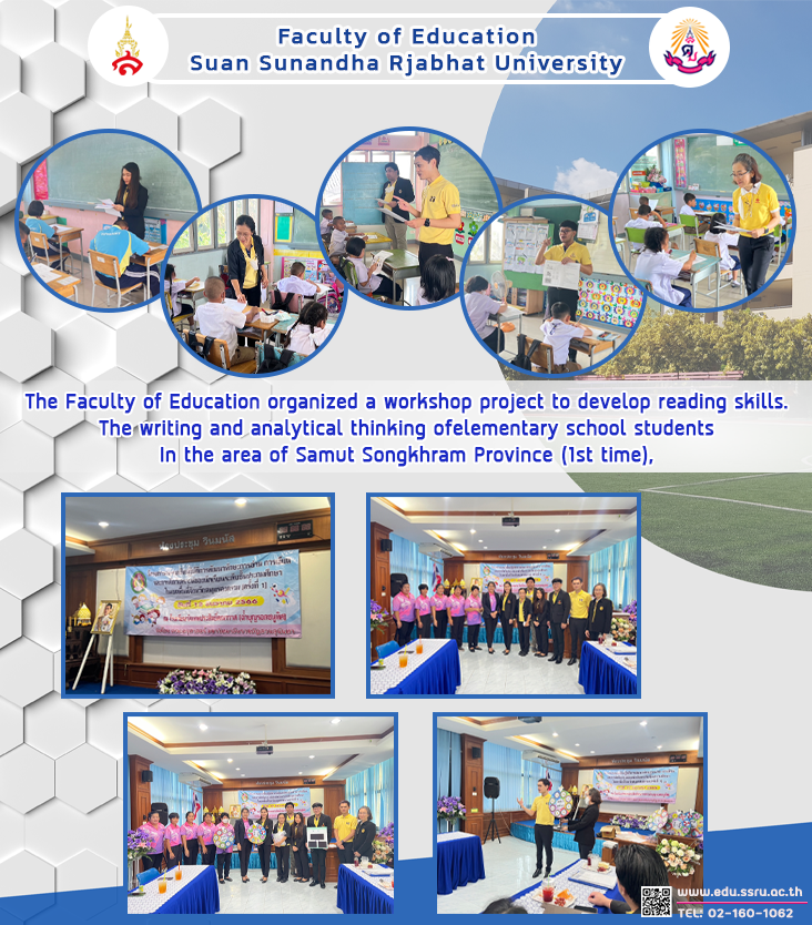 On December 12, 2023, the Faculty of Education, Suan Sunandha Rajabhat University, led by Assistant Professor Dr.Teeraporn Plailek, Deputy Dean for Research and Academic Services, along with faculty members from the Faculty of Education, organized a workshop project to develop reading, writing, and analytical thinking skills. of elementary school students In the area of Samut Songkhram Province (1st time),
