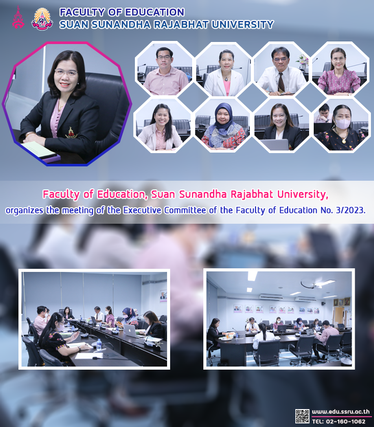 On March 14, 2023, the Faculty of Education, Suan Sunandha Rajabhat University, led by Assistant Professor Dr. Kannika Piromrat, Dean, together with Associate Dean of all departments, Professor Dr. Duangkamon Chongcharoen, Director of the Center for Professional Development in Education. Assistant Professor Supanwadee Wairup, Director of the Center for Early Childhood Development Organized the 3rd/2023 Executive Committee meeting of the Faculty of Education at the meeting room 1124.