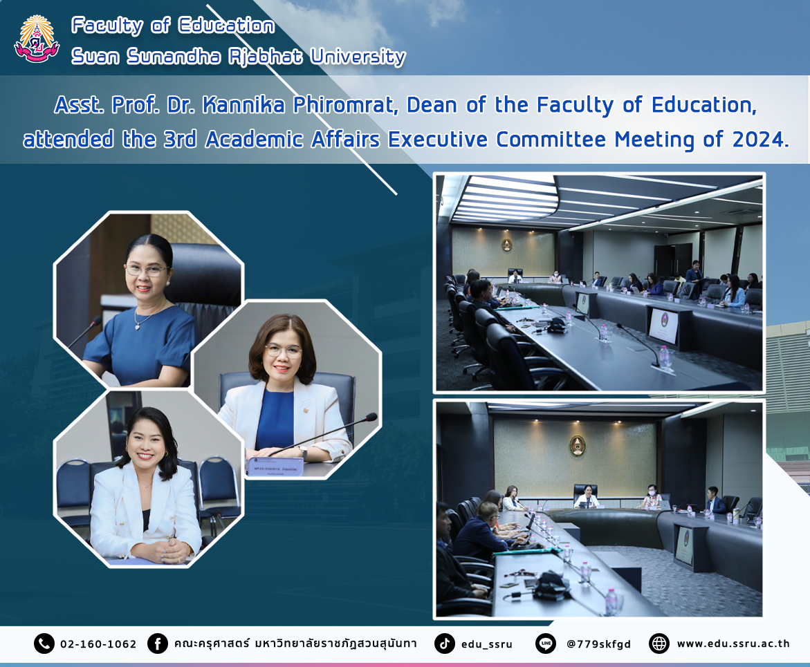 On May 16, 2024, from 1:30 to 4:00 p.m., Assistant Professor Dr. Kannika Phiromrat, Dean of the Faculty of Education, and Assistant Professor Dr. Tasanee Setthapong, Deputy Dean for Academic Affairs, Faculty of Education, Suan Sunandha Rajabhat University, attended the Academic Affairs Administration Committee Meeting No. 3/2024 at the University Council Meeting Room, Building 31, 5th Floor.