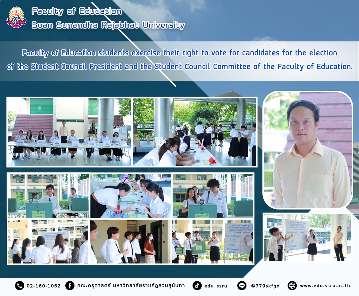 On March 17, 2025, from 9:00 a.m. to 3:00 p.m., led by Assistant Professor Panuwat Sivaskunraj, Deputy Dean for Student Affairs, and students exercised their right to vote for the candidates for the election of the Student Council President and the Student Council Committee, Faculty of Education, at the Teacher's House Courtyard, Faculty of Education.