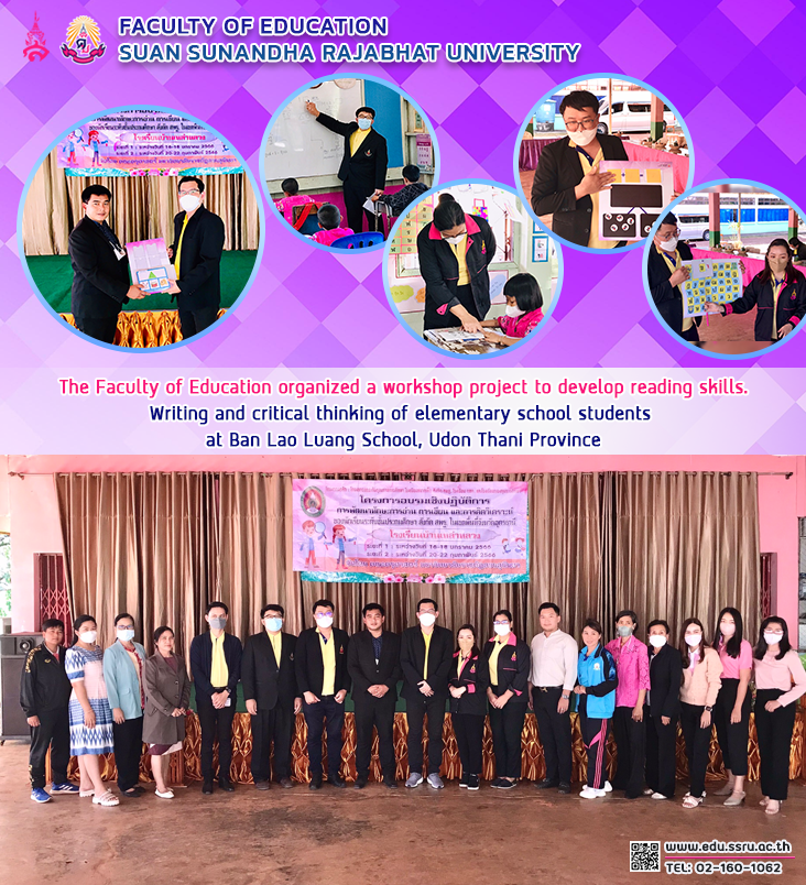 On January 17, 2023, the Faculty of Education at Suan Sunandha Rajabhat University was led by Weerapojt Ruttanawarn, Deputy Dean for Administration. along with faculty members of the Faculty of Education, organize a workshop project to develop reading, writing, and critical thinking skills. of elementary school students under the OBEC in the area of Udon Thani Province at Ban Lao Luang School, Udon Thani Province