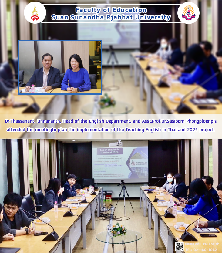 On December 19, 2023, Dr.Thassanant Unnanantn, Head of the English Department, along with Assistant Professor Dr.Sasiporn Phongploenpis, Lecturer in the Department, Faculty of Education, Suan Sunandha Rajabhat University, attended a meeting to plan the implementation of the Teaching English in Thailand 2024 project together with representatives from various faculties. This project is a collaboration between Suan Sunandha Rajabhat University and De Montfort University, England.