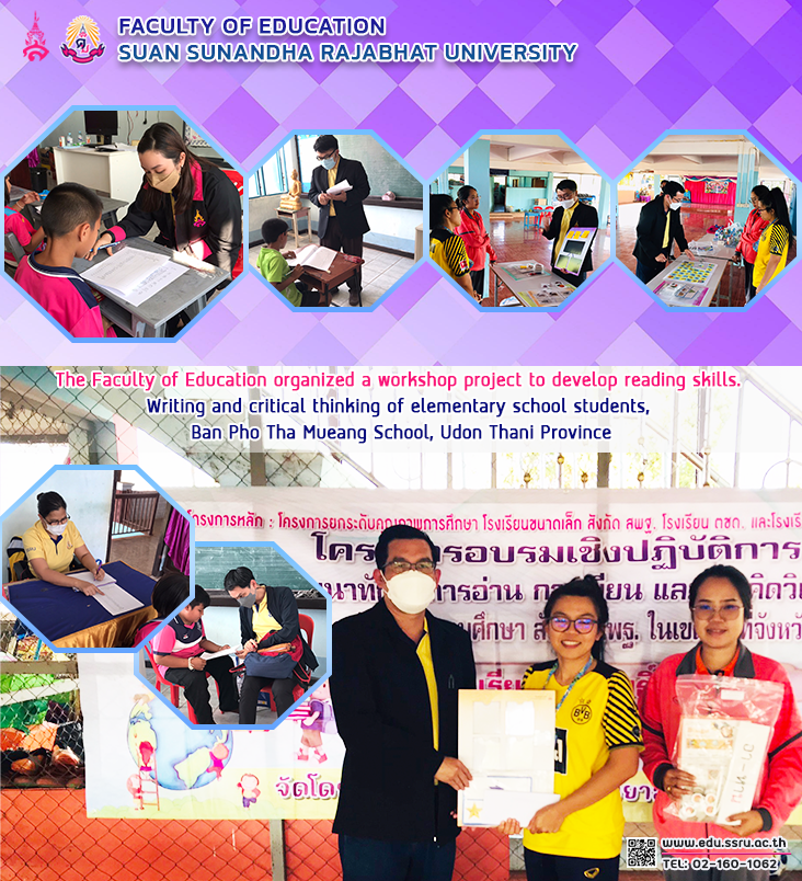 On January 18, 2023, the Faculty of Education at Suan Sunandha Rajabhat University was led by Weerapojt Ruttanawarn, Deputy Dean for Administration. along with faculty members of the Faculty of Education, organize a workshop project to develop reading, writing, and critical thinking skills. of elementary school students under the OBEC in the area of Udon Thani Province at Ban Pho Tha Muang School, Udon Thani Province