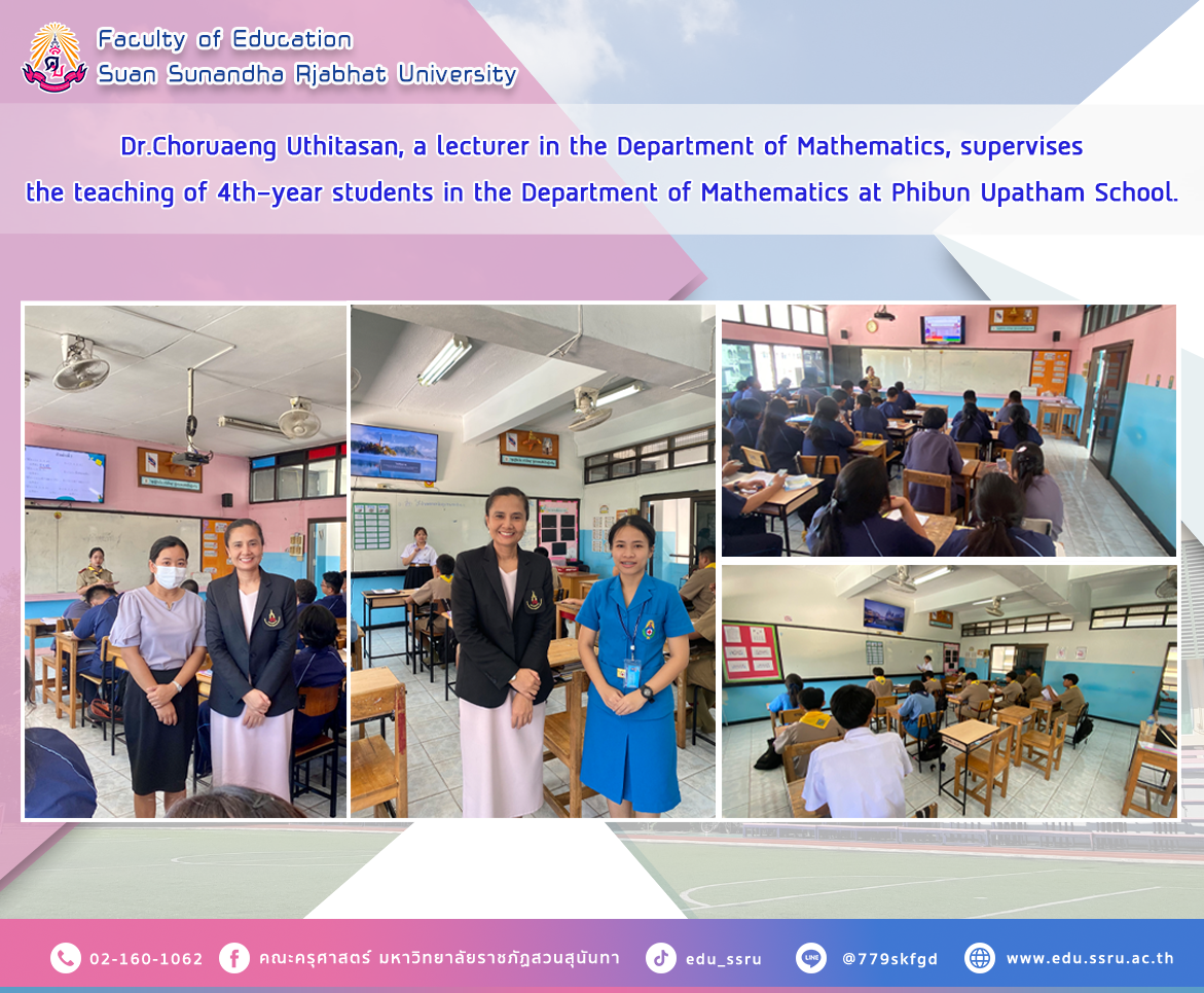 On June 20, 2024, Dr.Choruaeng Uthitasan, a lecturer in the Department of Mathematics, Faculty of Education, Suan Sunandha Rajabhat University, supervised the teaching of 4th-year students in the Department of Mathematics at Phibun Upatham School.