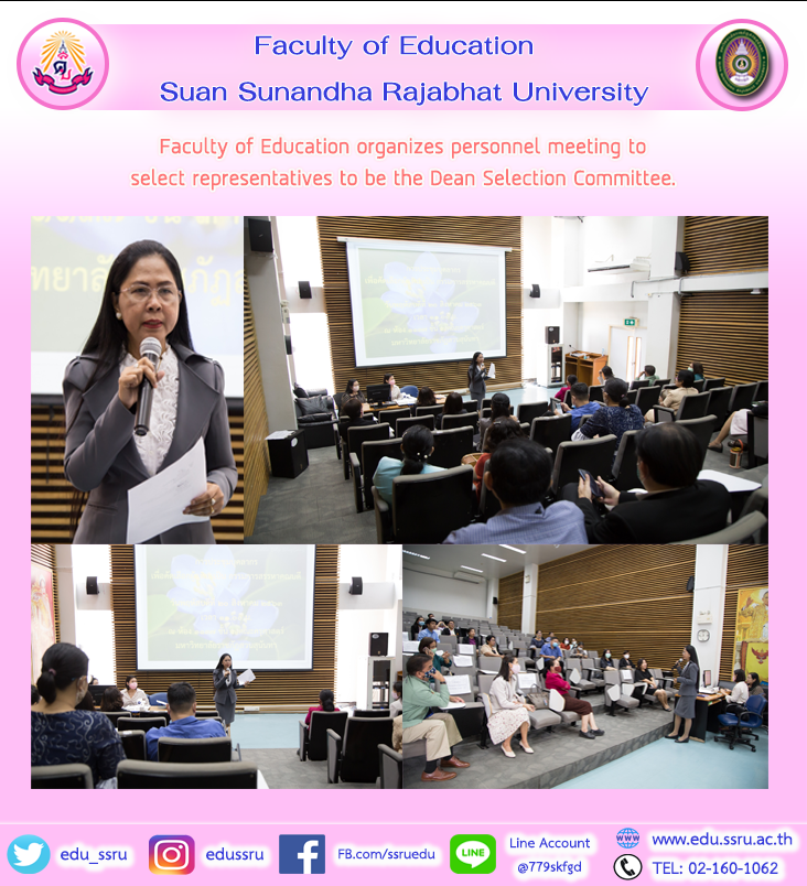 On August 20, 2020, Associate Professor Dr. Nantiya Noichun, Dean of the Faculty of Education Suan Sunandha Rajabhat University Organize personnel meetings to select representatives to be the Dean Selection Committee at Meeting Room 1137, 3rd Floor, Faculty of Education.