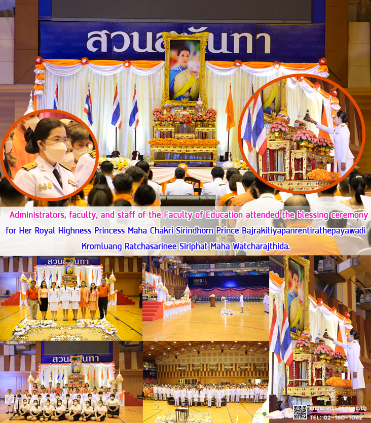 On December 20, 2022, the Faculty of Education at Suan Sunandha Rajabhat University was led by Assistant Professor Dr. Kannika Piromrat, Dean of the Faculty of Education. The blessing for Her Royal Highness Princess Bajrakitiyabha Narentira Thep Yowadee Kromluang Ratchasarinee Siriphat Maha Watcharajthida was signed by executives and faculty members, and the ceremony was presided over by Associate Professor Dr. Chutikan Sriwiboon, President of the University. together with the management team, personnel, and students, attended the ceremony at the Health and Sports Center Building, 4th floor.