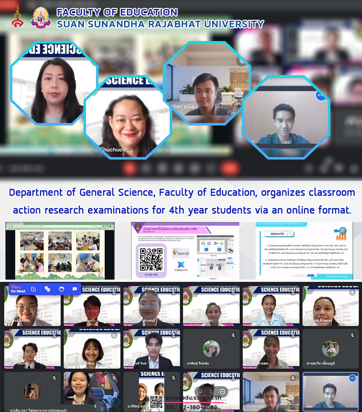 On February 19, 2023, the Department of General Science, Faculty of Education, Suan Sunandha Rajabhat University will organize classroom action research exams for 4th year students through an online format.