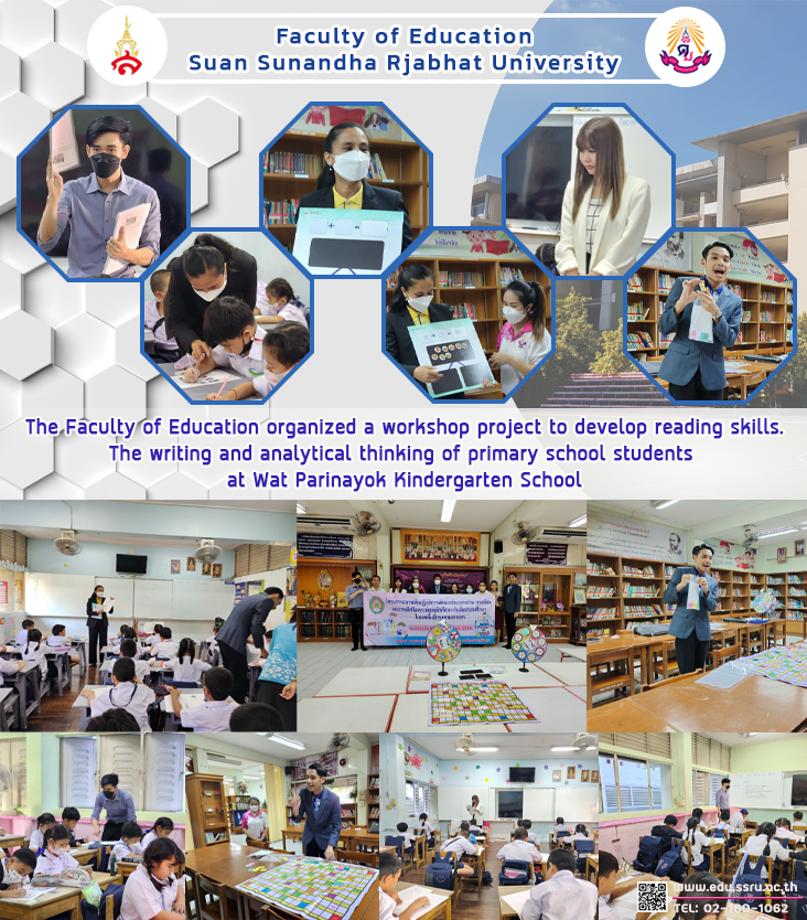 On December 20, 2023, the Faculty of Education, Suan Sunandha Rajabhat University, led by Assistant Professor Dr.Boonrudee Udomphol, Deputy Dean for Planning and Quality Assurance, along with faculty members from the Faculty of Education, organized a workshop project to develop the reading, writing, and analytical thinking skills. of elementary school students. In the area of Bangkok province (1st time) under the main project Project to improve the quality of education in small schools under OBEC, Border Patrol Police schools, and Education Fund schools at Wat Parinayok Kindergarten School.