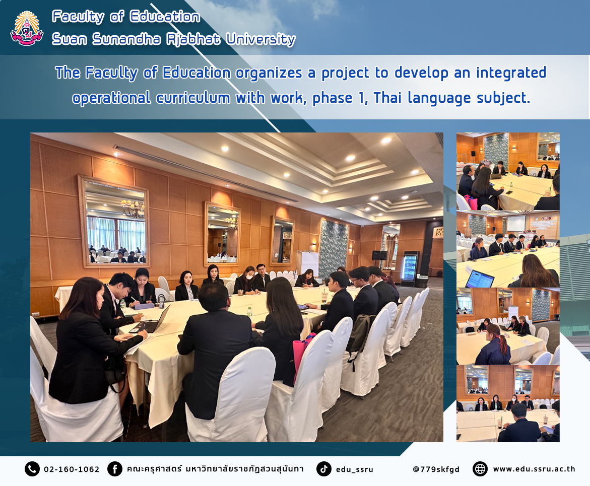 On January 19, 2025, the Faculty of Education, Suan Sunandha Rajabhat University, organized the project to develop an integrated operational curriculum with work, Phase 1, Thai language major, with a discussion on “Using graduate user data to improve the Bachelor of Education curriculum” at the Royal City Hotel, Pinklao.