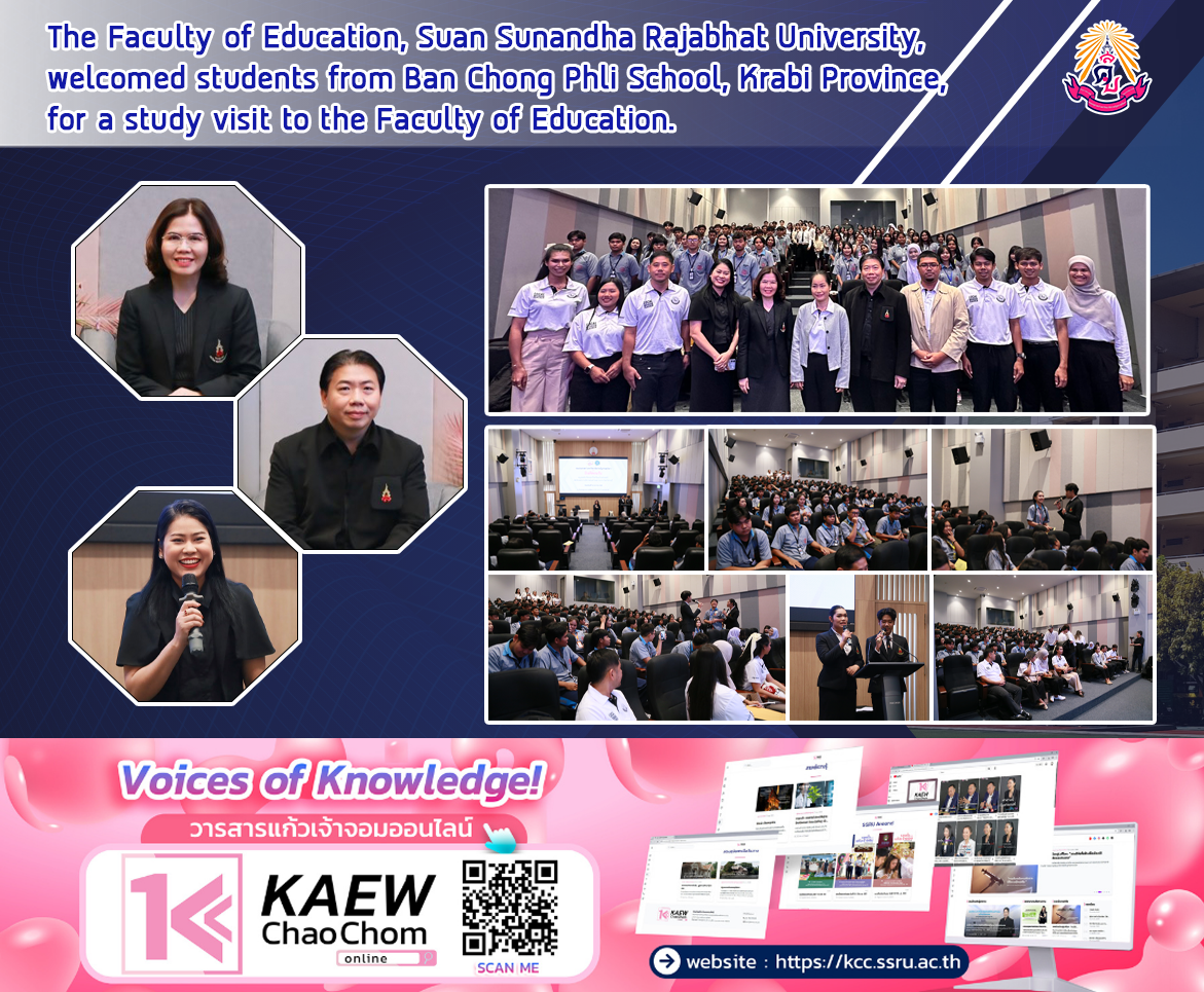 On January 22, 2026, the Faculty of Education, Suan Sunandha Rajabhat University, led by Assistant Professor Dr. Kannika Piromrat, Dean of the Faculty of Education; Assistant Professor Dr. Tasanee Satthaphong, Vice Dean for Academic Affairs; Assistant Professor Dr. Tanawat Srisiriwat, Vice Dean for Administration; Ms.Wimon Rakree, Acting Head of the Office; and staff, welcomed teachers and students from Ban Chong Phli School, under the Ao Nang Subdistrict Administrative Organization, Krabi Province, to visit the Faculty of Education. The purpose of the visit was to enhance their knowledge and understanding of teaching and learning management and the role of the teaching profession. The visit included a video presentation introducing the Faculty of Education and an introduction to the curriculum and teacher training programs. The event took place in the Kannapornpipat Meeting Room (1157), Building 11, Faculty of Education.