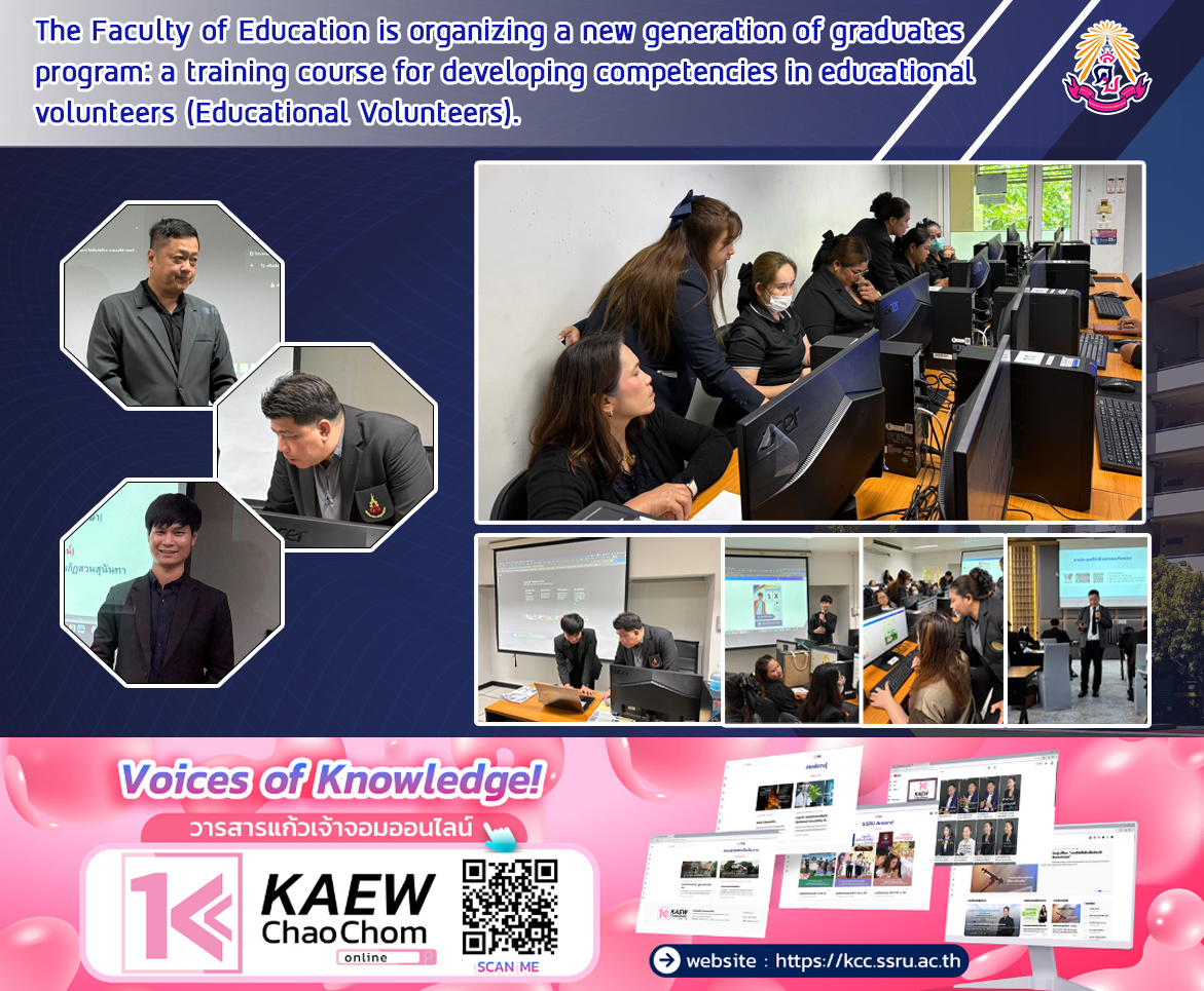 On January 17, 2026, the Faculty of Education, Suan Sunandha Rajabhat University, organized the New Generation Graduate Production Project: Volunteer Education Competency Development Course (Modules 2-3), supported by the Office of the Permanent Secretary, Ministry of Higher Education, Science, Research and Innovation, in collaboration with Suan Sunandha Rajabhat University. The project aimed to develop the skills of educational personnel and interested individuals in early childhood education and learning promotion. The event featured presentations by Dr. Chaiwat Jiwpanich, Head of the Innovation and Educational Technology Program; Assistant Professor Dr.Sinchai Poolklai; and Mr. Pasawut Cheerapakorn on the topic of "Using Technology in Media Production."