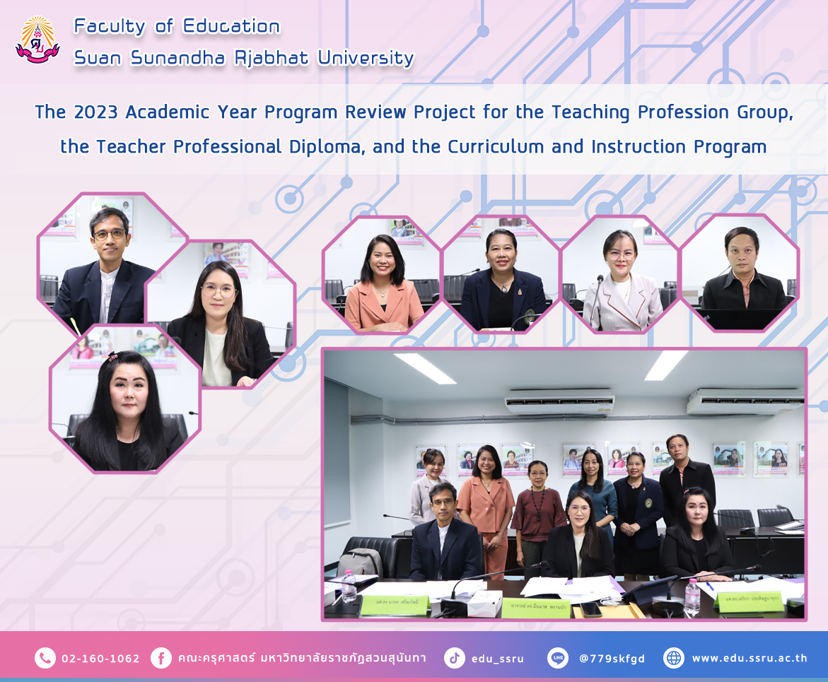 On May 23, 2024, the Faculty of Education at Suan Sunandha Rajabhat University organized a curriculum review project for the academic year 2023 for the teaching profession, the Bachelor of Education Certificate Program, and the Curriculum and Instruction program, with Assistant Professor Dr. Narat Srilapothi, Assistant Professor Dr. Thewika Praditbatuka, and Lecturer Dr. Meenamas Pranpa as speakers in Room 1124.