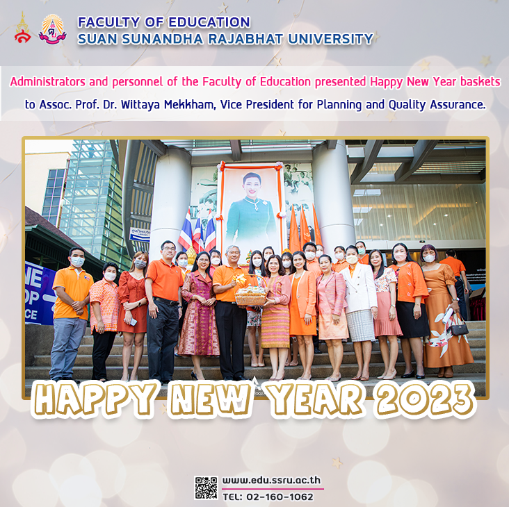 On December 23, 2022, Assistant Professor Dr. Kannika Piromrat, Dean of the Faculty of Education at Suan Sunandha Rajabhat University, along with executives and personnel of the faculty, enjoyed a Happy New Year gift basket. Associate Professor Dr. Wittaya Mekkham, Vice President for Planning and Quality Assurance