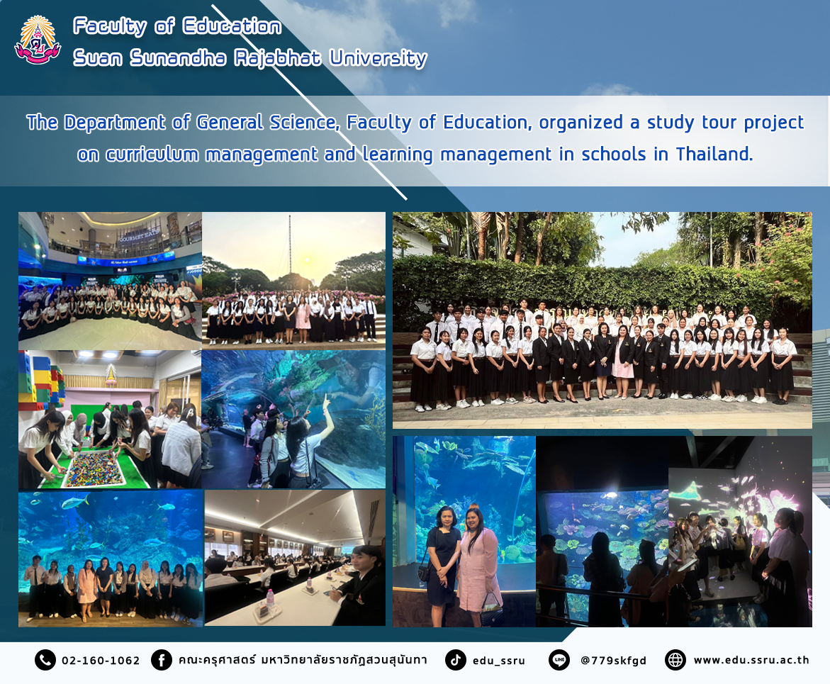 On February 21, 2025, led by Dr.Thadcha Sukrachan, Head of the Department of General Science, and Dr.Pawinee Rattanakorn, Lecturer of the Department of General Science, Faculty of Education, Suan Sunandha Rajabhat University, a study tour project was organized for second-year students on curriculum administration and learning management of schools in Thailand at Chulalongkorn University Demonstration School, Bangkok, and Sea Life Bangkok Ocean World, Bangkok.