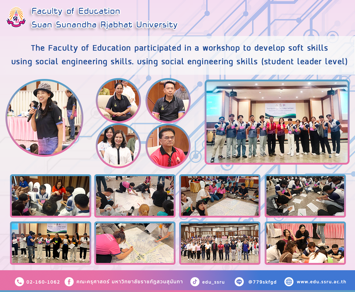 On April 23–26, 2024, the Faculty of Education at Suan Sunandha Rajabhat University, led by Assistant Professor Dr. Kannika Piromrat, Dean of the Faculty of Education, Assistant Professor Songkran Khuntiptong, Deputy Dean for Student Affairs, and Ms.Oradee Homwong, Student and Student Affairs Officer of the Faculty of Education, participated in a workshop to develop soft skills using social engineering skills. using social engineering skills (student leader level) with honor from Associate Professor Dr. Chutikarn Sriviboon, President of Suan Sunandha Rajabhat University, in a special lecture on the topic. "The role of student leaders in the creation of innovations to enhance the community through the social engineering process" Assistant Professor Dr.Jetsarit Angsukanchanakul, Vice President for Student Affairs, gave the opening speech for the project at the New Travel Beach Hotel, Chanthaburi Province.