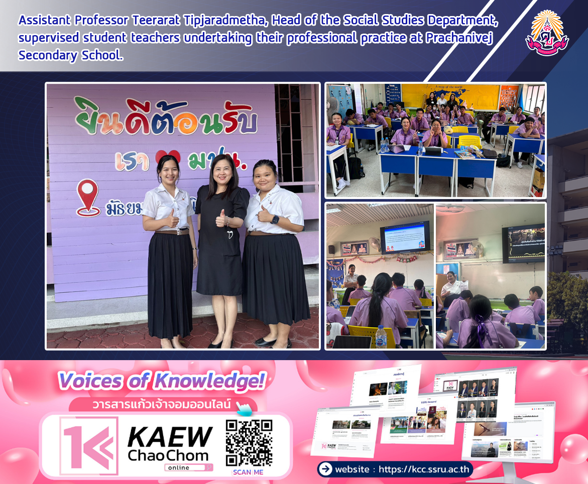 On January 27, 2026, Assistant Professor Teerarat Tipjaradmetha, Head of the Social Studies Department, supervised student teachers at Prachaniveat Secondary School to monitor their teaching performance in a real-world environment. She also provided guidance on designing engaging learning activities and received feedback from their mentors to further develop the students' capabilities and ensure they meet the standards of the teaching profession.