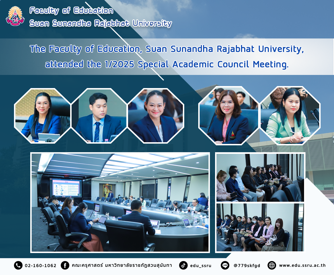 On April 29, 2025, at 9:00 a.m., the Faculty of Education, Suan Sunandha Rajabhat University, led by Assistant Professor Dr. Kannika Phiromrat, Dean of the Faculty of Education, along with faculty members of the Faculty of Education, attended the special academic council meeting No. 1/2025 at the University Council Meeting Room, 5th floor, Building 31.