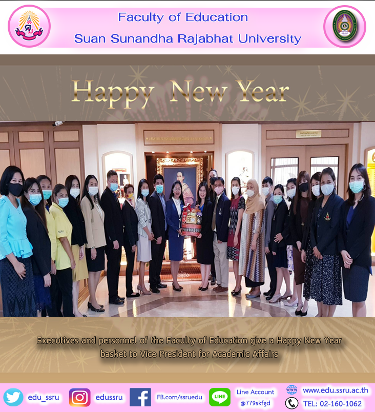 December 28, 2020, Assistant Professor Dr. Kannika Piromrat, Dean of the Faculty of Education Suan Sunandha Rajabhat University With personnel Give a basket happy new year Associate Professor Dr. Nantiya Noichun, Vice President for Academic Affairs
