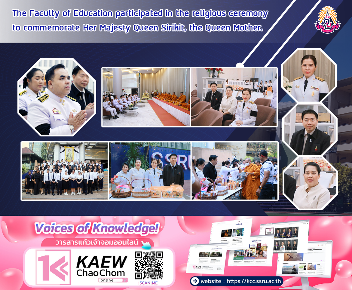 On January 30, 2026, the Faculty of Education, Suan Sunandha Rajabhat University, led by Assistant Professor Dr. Kannika Piromrat, Dean of the Faculty of Education; Assistant Professor Dr. Thanawat Srisiriwat, Vice Dean for Administration; and Assistant Professor Dr. Boonrudee Udomphol, Vice Dean for Planning and Quality Assurance, participated in the royal merit-making ceremony commemorating the 100th day since the passing of Her Majesty Queen Sirikit, the Queen Mother. Associate Professor Dr. Komsan Sommanawat, Vice President for Administration, presided over the ceremony at the Office of the President, 1st floor, Suan Sunandha Rajabhat University.