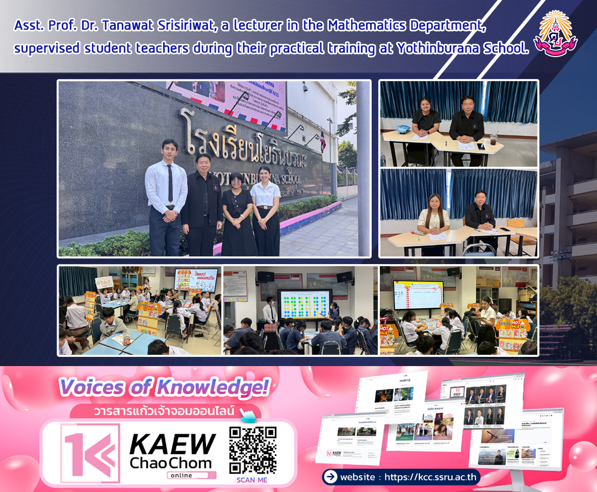 On January 29, 2026, Assistant Professor Dr. Tanawat Srisiriwat, a lecturer in mathematics from the Faculty of Education, Suan Sunandha Rajabhat University, supervised the teacher training of students at Yothinburana School. The purpose was to assess their teaching progress and gather feedback from their mentor teachers. The findings indicated that the students had improved their teaching skills, effectively implementing active learning activities appropriate for the learners and producing practical learning materials and innovations.