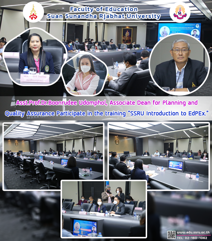 The Faculty of Education, Suan Sunandha Rajabhat University, led by Assistant Professor Dr. Boonrudee Udomphol, Deputy Dean for Planning and Quality Assurance, and Ms.Pattaraporn Hussadee, Planning and Quality Assurance Officer assigned by Assistant Professor Dr. Kannika Piromrat, Dean of the Faculty of Education, attended the "SSRU Introduction to EdPEx" training on January 31, 2023, from 9:00 a.m. to 12:00 p.m. Associate Professor Dr. Wittaya Mekkham, Vice President for Planning and Quality Assurance, presided over the opening of the training, honoring assistant professor Dr. Teerasak Prapong, an expert and EdPEx200 assessor, who was a lecturer at the University Council meeting room, Building 31, 5th floor.