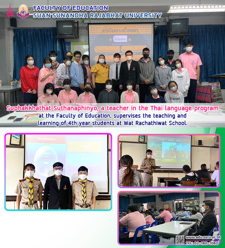 Date: January 30 - 31, 2023 Suphakkhathat Suthanaphinyo Lecturer in Thai Language Program, Faculty of Education, Suan Sunandha Rajabhat University Supervision of teaching and learning of 4th year students at Wat Rachathiwat School