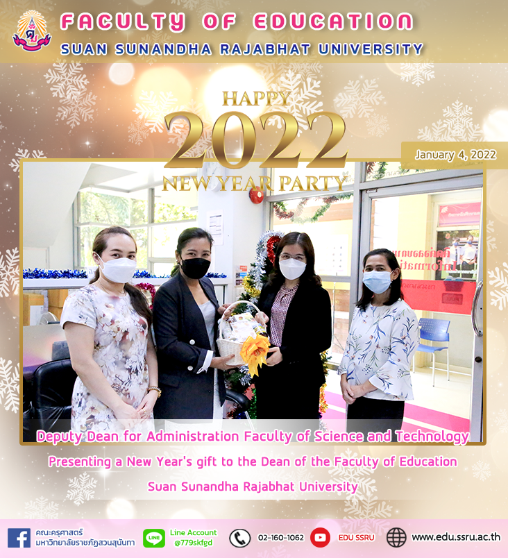 On January 4, 2022, Assistant Professor Dr. Thalisa Niemmanee, Associate Dean for Administration Faculty of Science and Technology Presenting New Year gifts to Assistant Professor Dr. Kannika Piromrat, Dean of the Faculty of Education Suan Sunandha Rajabhat University
