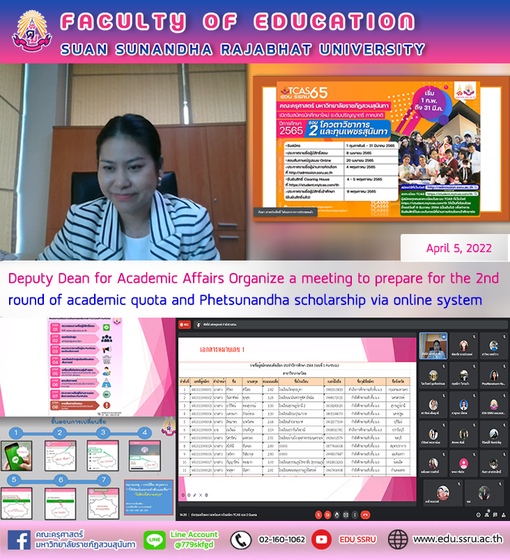 Assistant Professor Dr. Tasanee Satthaphong, Associate Dean for Academic Affairs Organized a meeting to prepare for the 2nd round of academic quota and Phetsunandha scholarship on April 4, 2022 at 2 pm via online system.