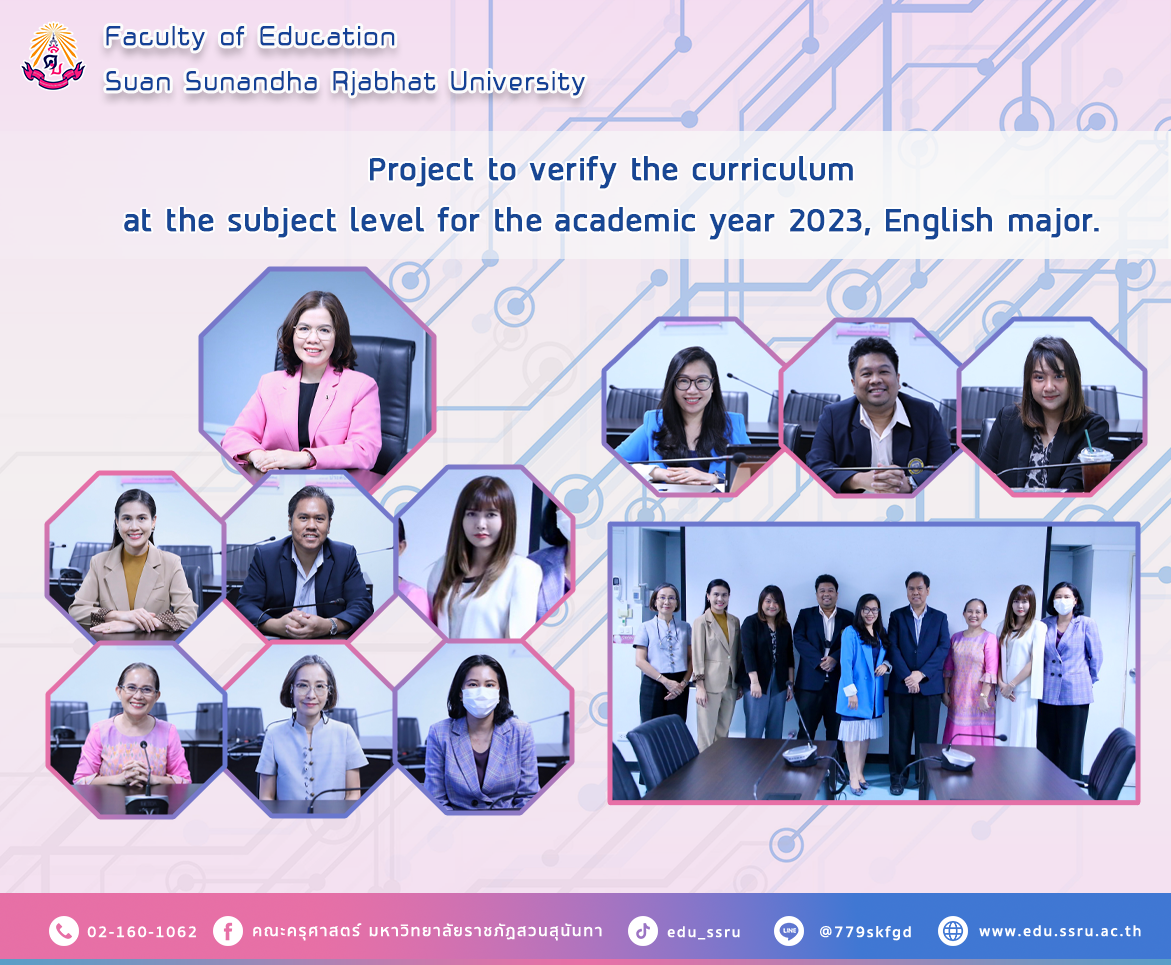 On May 7, 2024, Assistant Professor Dr. Kannika Piromrat, Dean of the Faculty of Education, was honored to chair the course verification project for the English Department. The examination committee consists of lecturer Dr. Nitisak Pairoj, Curriculum Director of the Education Project. Rajapruek University Lecturer Dr. Sukanya Sudararat, Faculty of Liberal Arts, Rajapruek University, Assistant Professor Thipwimon Prasertsri, School of Tourism and Hospitality, Suan Dusit University, and teachers of the English Department joined to exchange academic knowledge this time.
