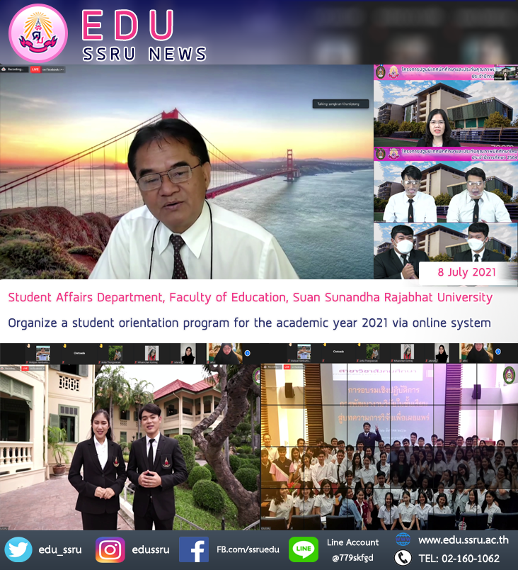 On July 8, 2021, Assistant Professor Songkran Khuntiptong, Associate Dean for Student Affairs, Faculty of Education, Suan Sunandha Rajabhat University Organize a student orientation program Academic year 2021 via online system
