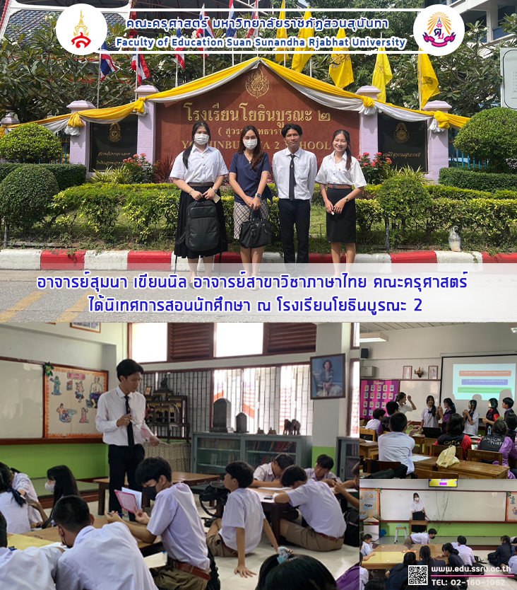 วันที่ 1 ธันวาคม 2566 อาจารย์สุมนา  เขียนนิล อาจารย์สาขาวิชาภาษาไทย คณะครุศาสตร์ มหาวิทยาลัยราชภัฏสวนสุนันทา ได้นิเทศการสอนนักศึกษา ณ โรงเรียนโยธินบูรณะ 2