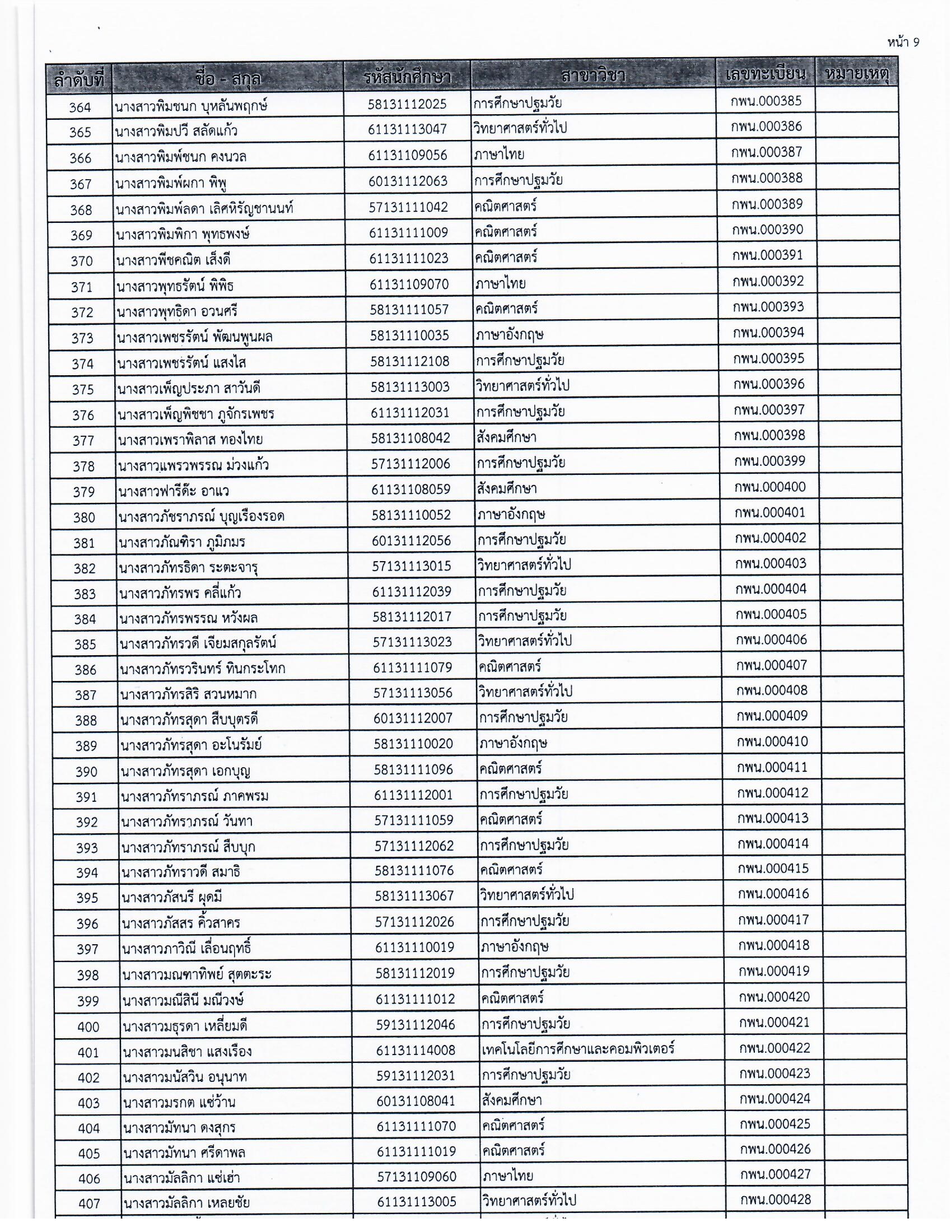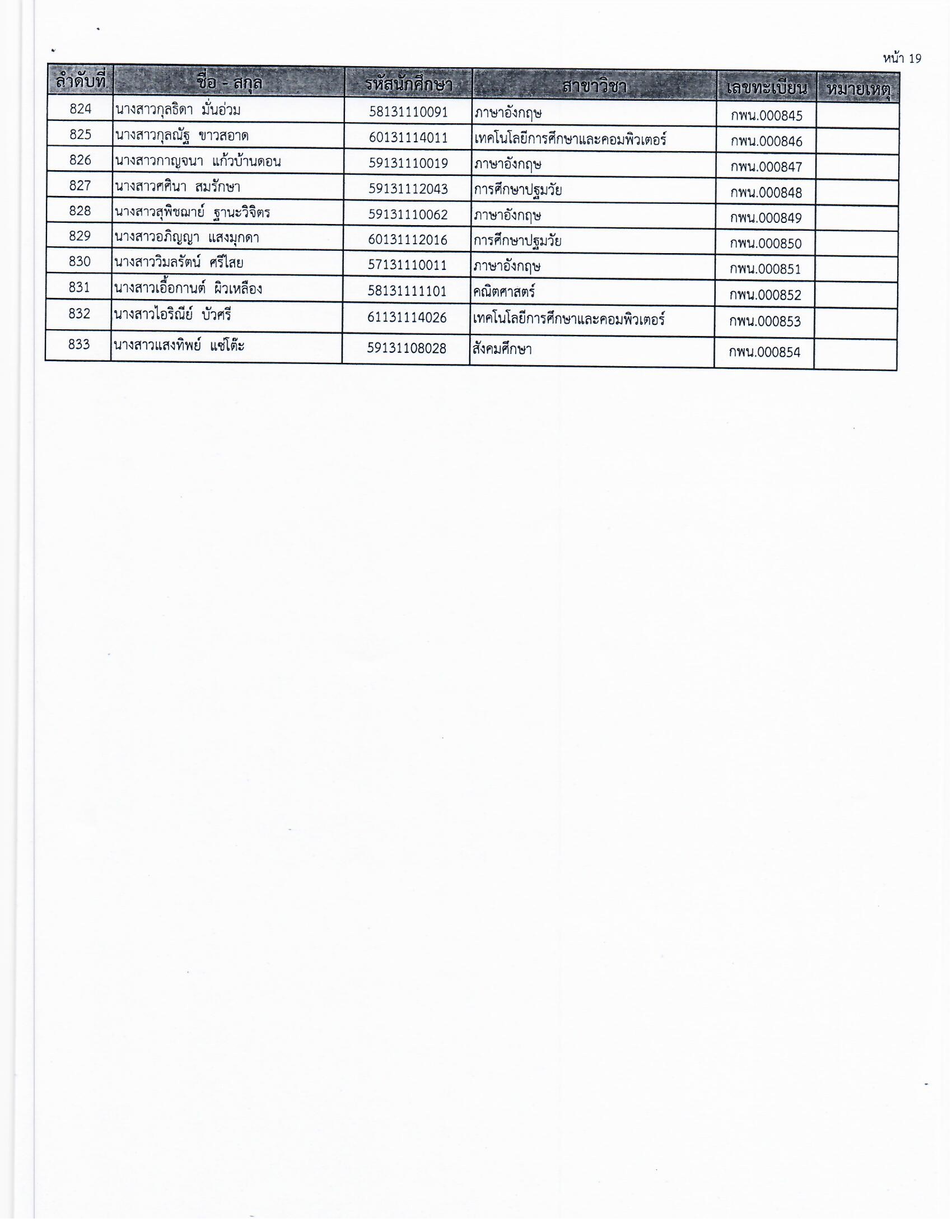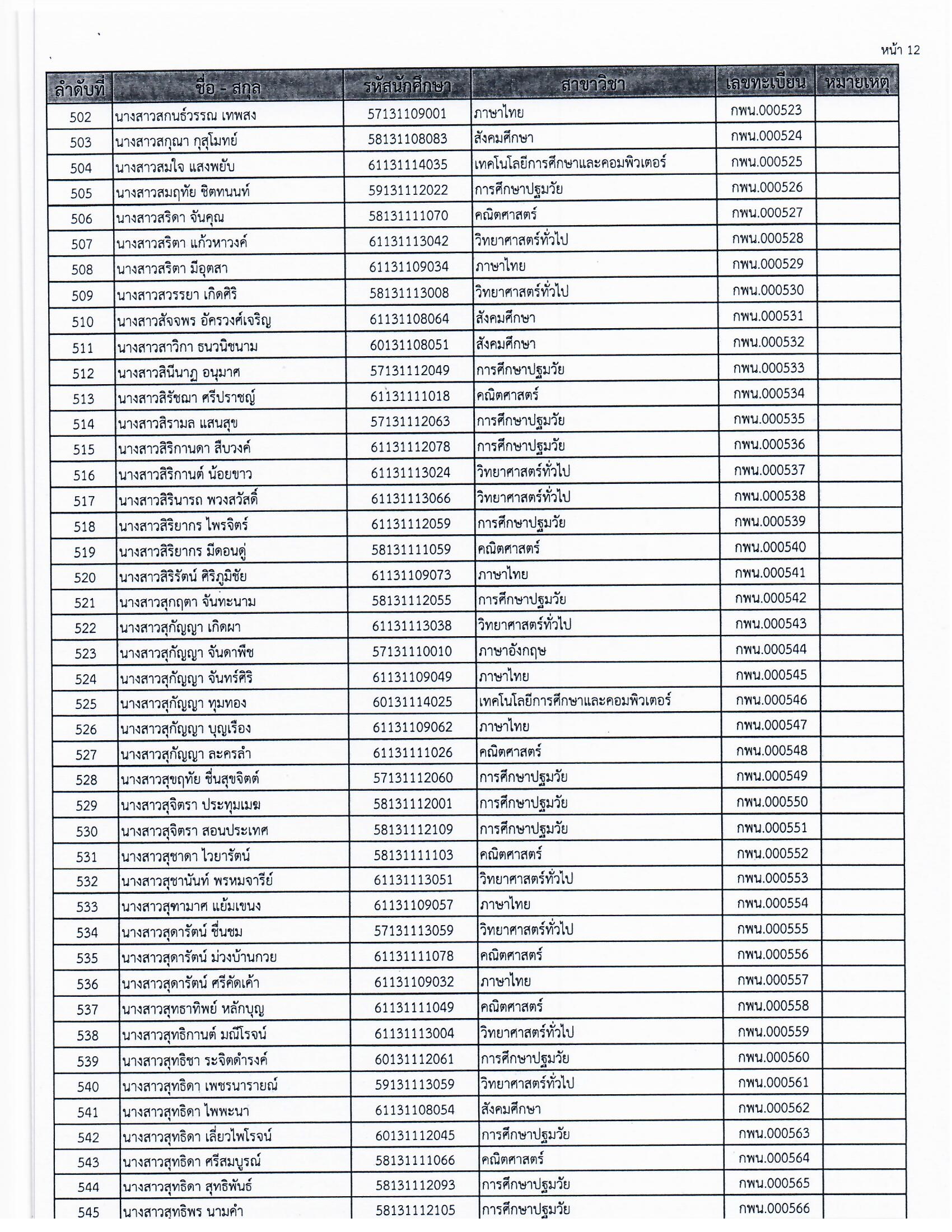 ตรวจสอบรายชื่อตนเองโดยเอกสารจะแสดงรายชื่อเรียงตามตามพยัญชนะ