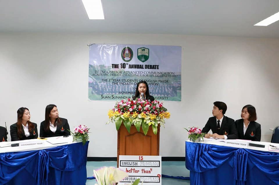 วันที่16 พฤศจิกายน 2560 ณ ห้อง1131 ระหว่างเวลา 09.00 – 14.00 น. นักศึกษาสาขาภาษาอังกฤษชั้นปีที่3 หมู่เรียนที่1 และอาจารย์ Abigail Melad Essien ร่วมจัดกิจกรรม the 10th Annual Debate English for Advance Communication : Academic Challenge For EFL Learners 2017 ระดับ Class Debate ในรายวิชา ENE3414 ภาษาอังกฤษเพื่อการสื่อสารระดับสูง โดยจุดประสงค์ในการจัดกิจกรรมครั้งนี้คือ เพื่อพัฒนาทักษะการพูดภาษาอังกฤษขั้นสูงและการโต้ตอบอย่างมีเหตุผล โดยจะจัดการแข่งขันโต้วาทีอีกครั้งในวันที่ 24 พฤศจิกายน 2560 ระหว่างเวลา 09.00-16.00 ณ ห้อง1137 ในการนี้คณะผู้จัดงานขอเรียนเชิญผู้ที่สนใจเข้ารับชมกิจกรรมโต้วาทีตามวัน เวลา และสถานที่ดังกล่าว