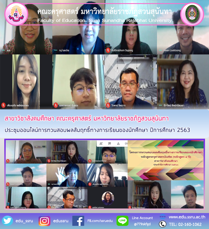 วันที่ 11 พฤษภาคม 2564 สาขาวิชาสังคมศึกษา คณะครุศาสตร์ มหาวิทยาลัยราชภัฏสวนสุนันทา ประชุมออนไลน์การทวนสอบผลสัมฤทธิ์ทางการเรียนของนักศึกษา ปีการศึกษา 2563