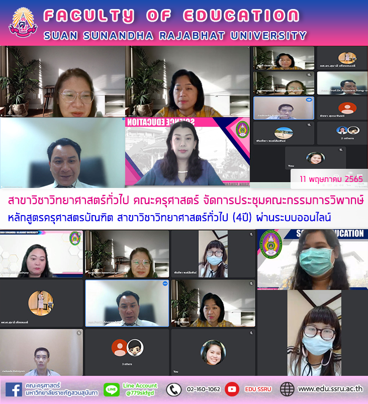 สาขาวิชาวิทยาศาสตร์ทั่วไป คณะครุศาสตร์ จัดการประชุมคณะกรรมการวิพากษ์ หลักสูตรครุศาสตรบัณฑิต สาขาวิชาวิทยาศาสตร์ทั่วไป (4ปี) หลักสูตรปรับปรุง พ.ศ. 2566 (ร่าง) ได้รับเกียรติจาก ผู้ช่วยศาสตราจารย์ ดร. อนุสรณ์ ตองอ่อน ผู้ช่วยศาสตราจารย์ ดร. พัชรี ร่มพยอม วิชัยดิษฐ และ ผู้ช่วยศาสตราจารย์ ดร. สุรีย์พร สว่างเมฆ ให้เกียรติมาเป็นคณะกรรมการวิพากษ์ ในวันพุธ ที่ 11 พฤษภาคม 2565 เวลา 9.00 – 12.00 น. ผ่านระบบออนไลน์