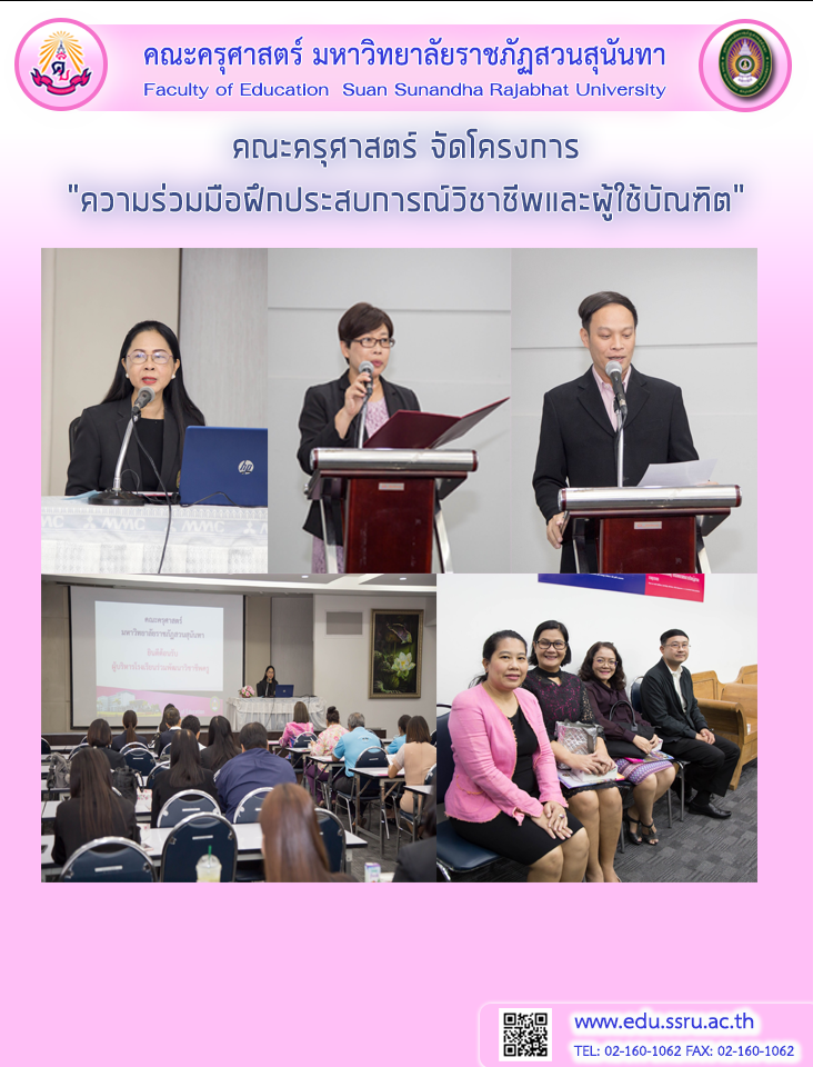 เมื่อวันที่ 12 พฤศจิกายน 2562 รองศาสตราจารย์ดร.นันทิยา น้อยจันทร์ คณบดีคณะครุศาสตร์ เป็นประธานจัดโครงการความร่วมมือฝึกประสบการณ์วิชาชีพและผู้ใช้บัณฑิต เพื่อพัฒนาความร่วมมือกระบวนการผลิตครูวิชาชีพให้ตรงตามความต้องการของผู้ใช้และความร่วมมือเพื่อยกระดับผลสัมฤทธิ์ ณ ห้องประชุมช่อแก้ว ชั้น 5 อาคาร 31 มหาวิทยาลัยราชภัฏสวนสุนันทา