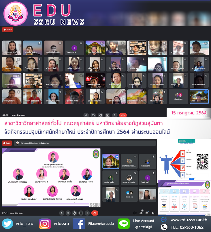 วันที่ 17 กรกฎาคม 2564 สาขาวิชาวิทยาศาสตร์ทั่วไป คณะครุศาสตร์ มหาวิทยาลัยราชภัฏสวนสุนันทา จัดกิจกรรมปฐมนิเทศนักศึกษาใหม่่ ประจำปีการศึกษา 2564 ผ่านระบบออนไลน์
