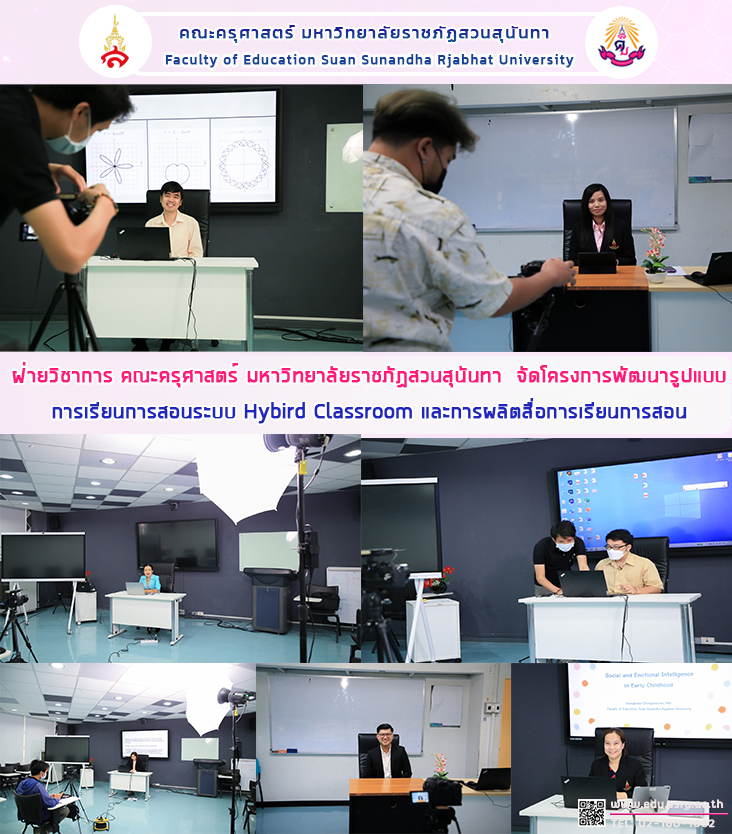 วันที่ 21 พฤศจิกายน 2565 ฝ่ายวิชาการ คณะครุศาสตร์ มหาวิทยาลัยราชภัฏสวนสุนันทา นำโดย ผู้ช่วยศาสตราจารย์ ดร.ทัศนีย์ เศรษฐพงษ์ รองคณบดีฝ่ายวิชาการ จัดโครงการพัฒนารูปแบบการเรียนการสอนระบบ Hybird Classroom และการผลิตสื่อการเรียนการสอน E-learning ของอาจารย์คณะครุศาสตร์ เพื่อส่งเสริมการจัดการเรียนการสอนในรูปแบบ Hybird Classroom ณ ห้อง Smart Classroom 1136 และห้อง 1142