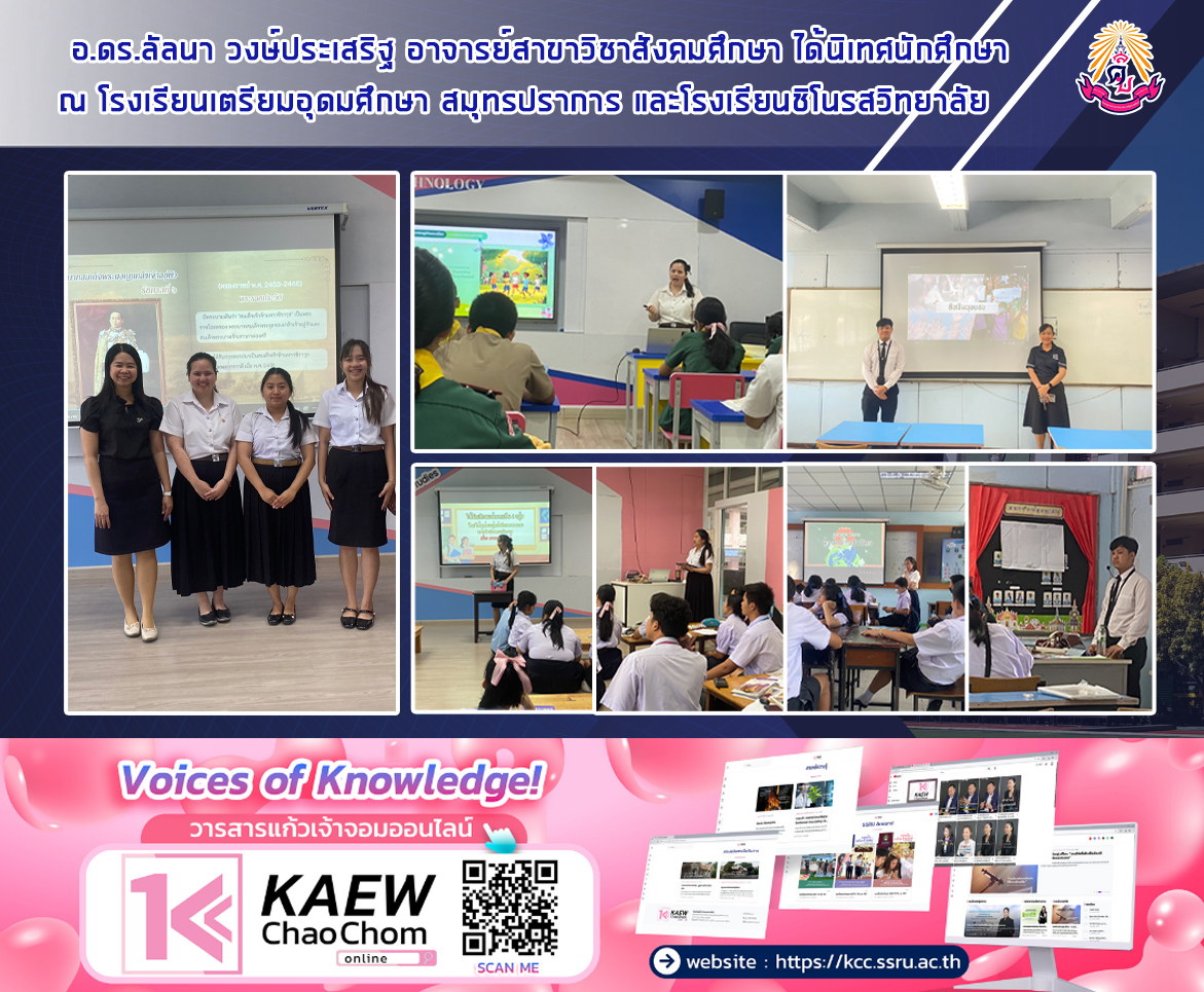 เมื่อวันที่ 21 และ 23 มกราคม 2569 อาจารย์ ดร.ลัลนา วงษ์ประเสริฐ อาจารย์สาขาวิชาสังคมศึกษา คณะครุศาสตร์ มหาวิทยาลัยราชภัฏสวนสุนันทา ได้นิเทศติดตามการฝึกประสบการณ์วิชาชีพครูของนักศึกษา ณ โรงเรียนเตรียมอุดมศึกษา สมุทรปราการ และโรงเรียนชิโนรสวิทยาลัย เพื่อประเมินพัฒนาการด้านการจัดการเรียนรู้และรับฟังความคิดเห็นจากครูพี่เลี้ยง