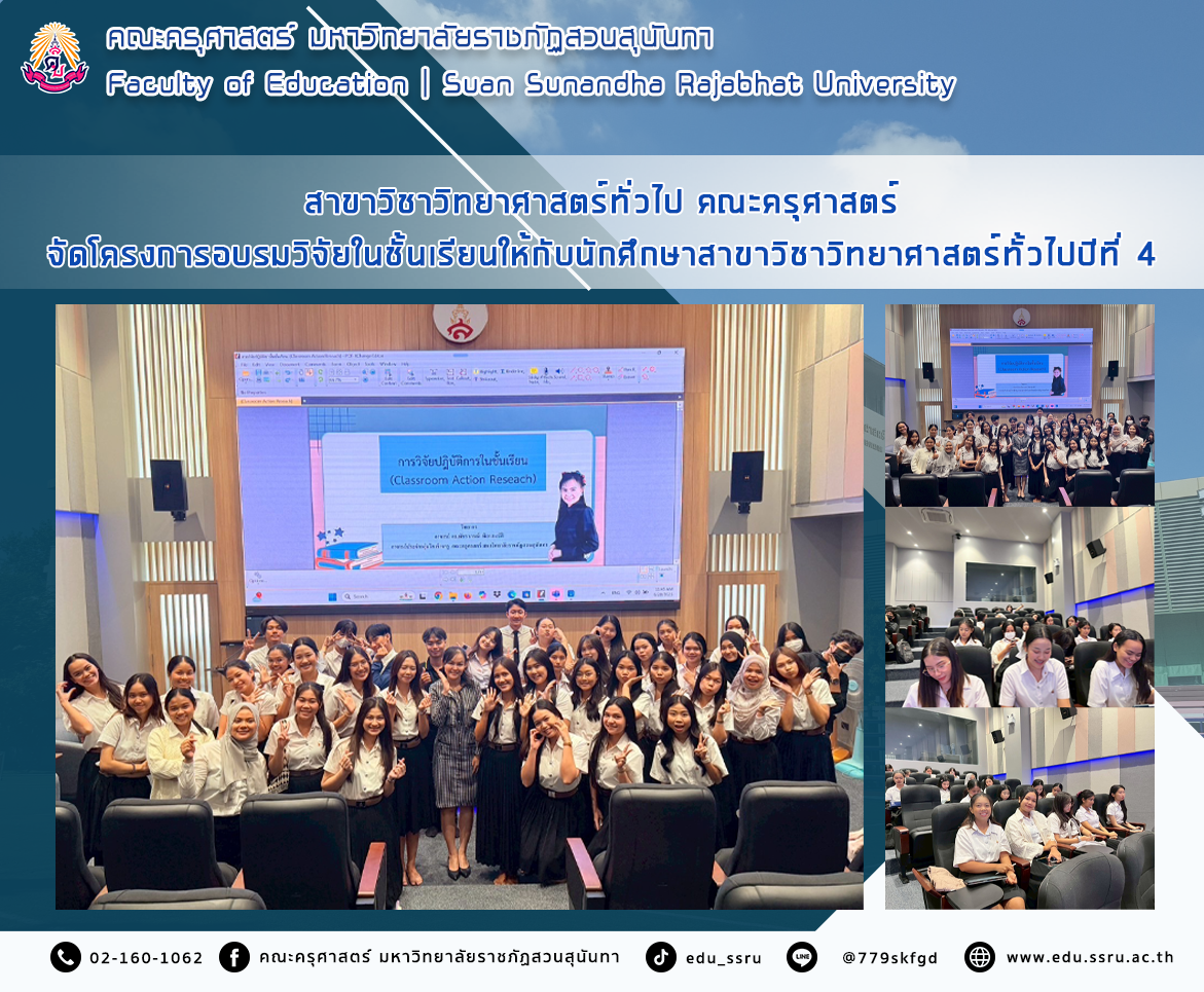 จัดโครงการอบรมวิจัยในชั้นเรียนให้กับนักศึกษาสาขาวิชาวิทยาศาสตร์ทั้วไปปีที่
